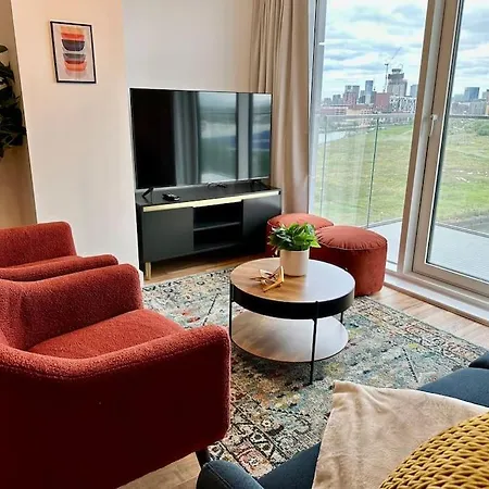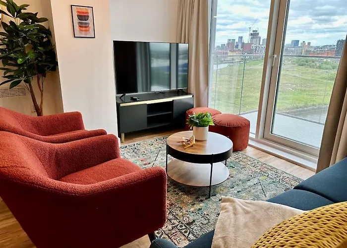El Beautiful Waterside Apartment Near Old Trafford Mánchester ofrece vistas a la ciudad y una ubicación a 2 km del Museo de Historia del Pueblo.